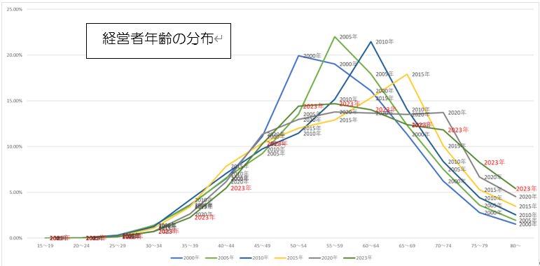 同じく中小企業白書での中小企業における経営者年齢の分布ですが、平準化は進んでいますが、依然高い水準で60歳以上の経営者が全体の過半数を占めています。